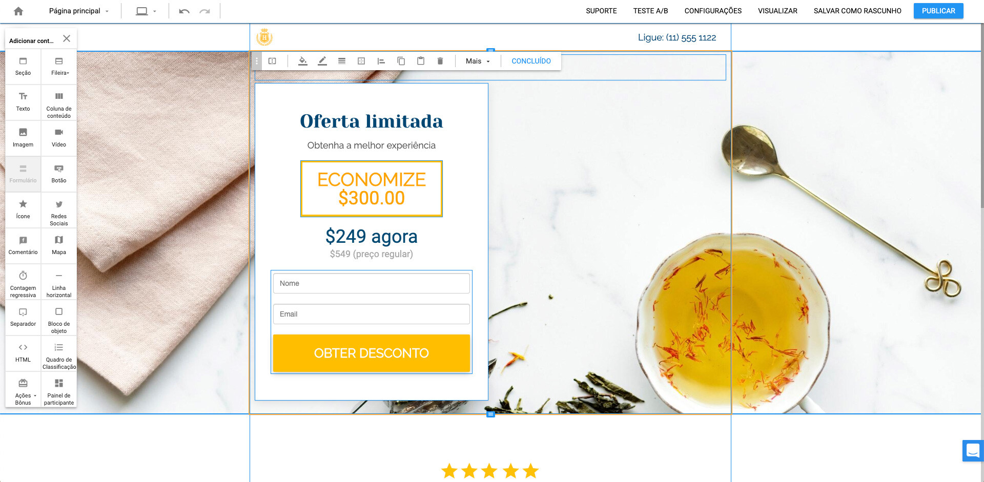 Use um dos mais de 100 templates otimizados por indústria para criar páginas bem-apresentadas e otimizadas para computadores e celulares.
